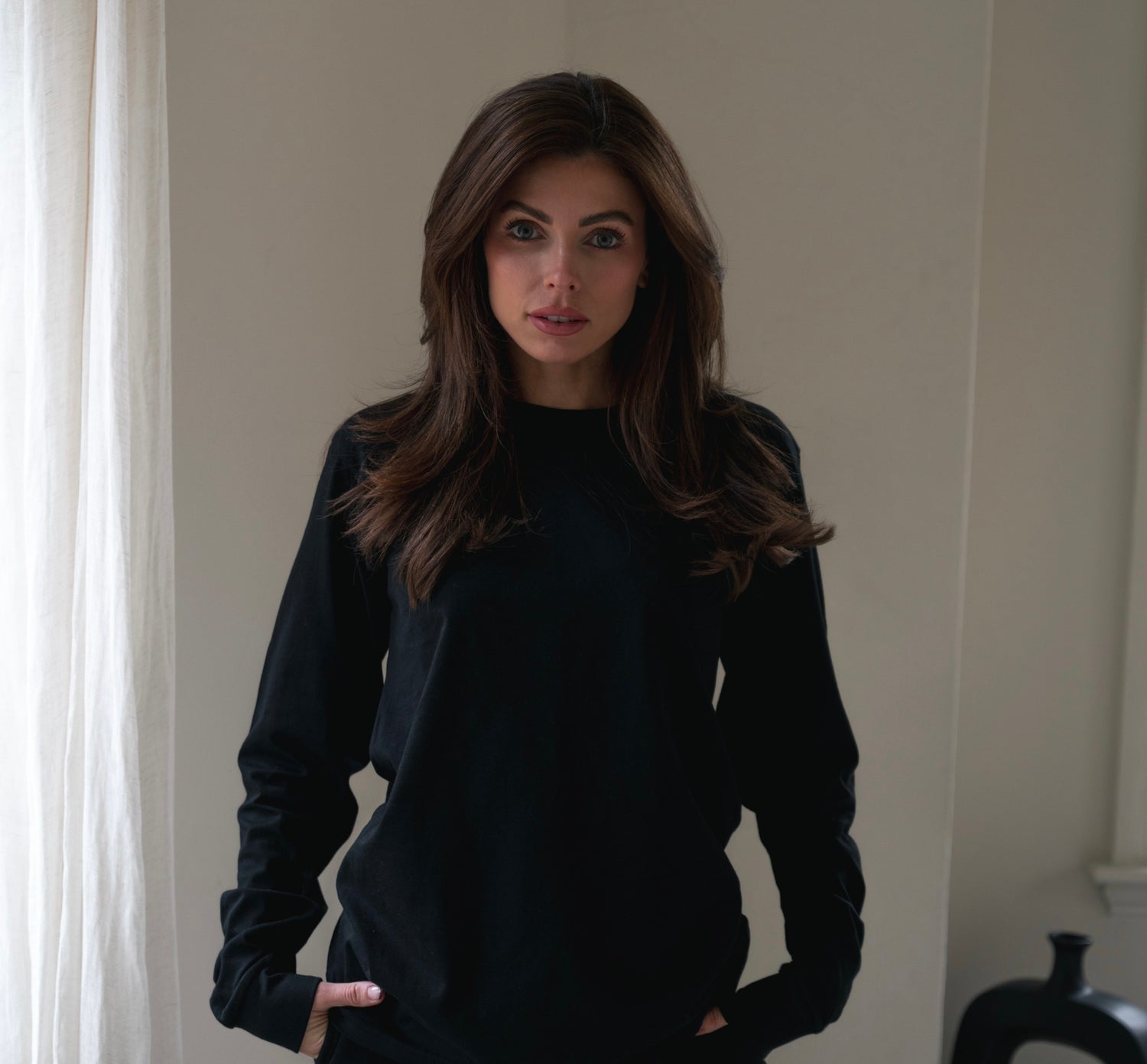 - Neck ribbing, side seamed shoulder to shoulder tape, double needle hems