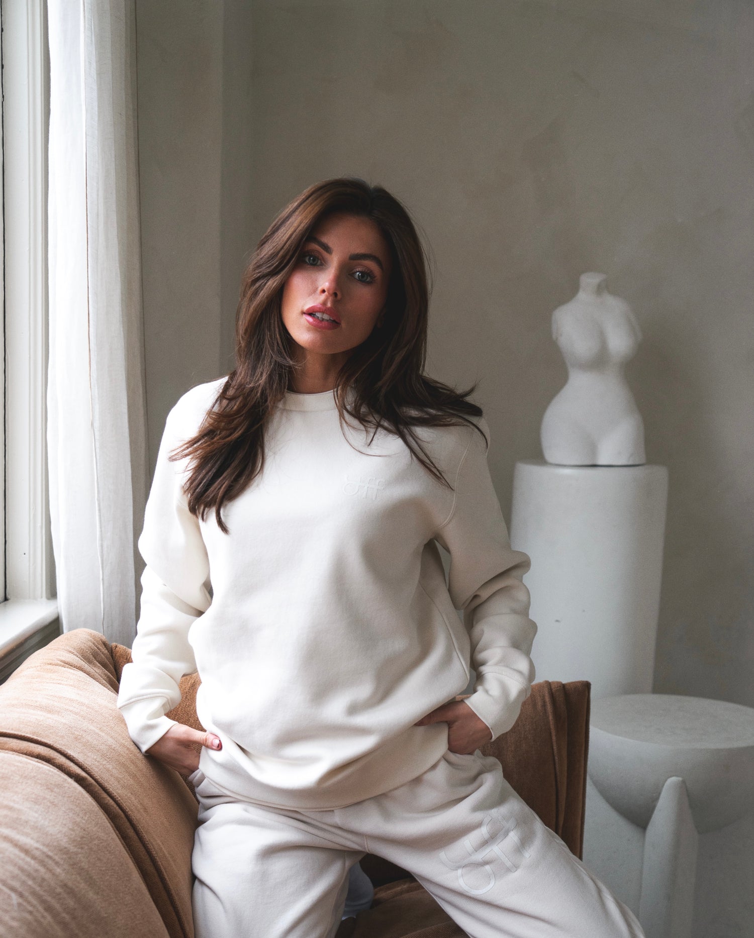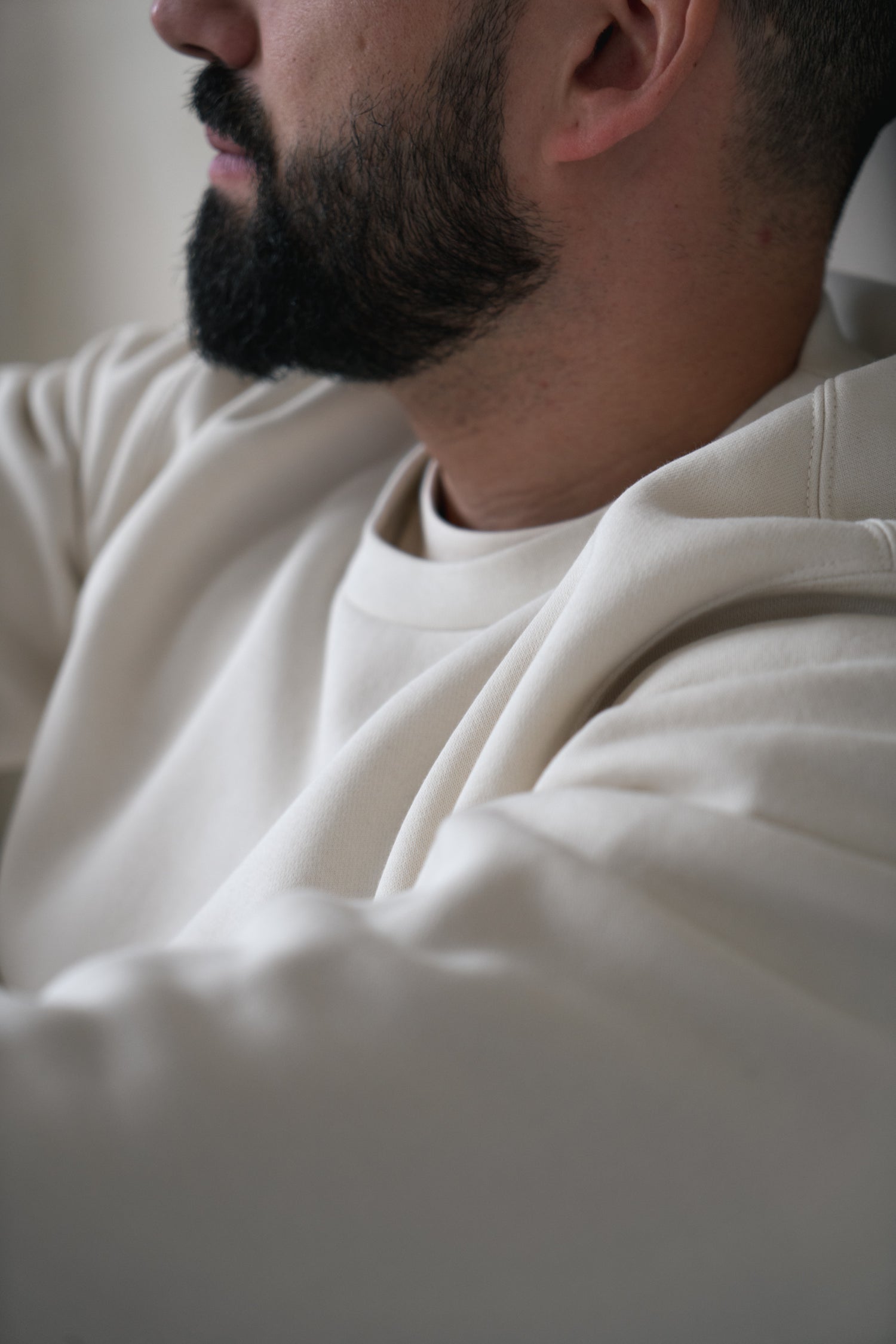 Pullover crew, inset sleeves, sleeve cuff ribbing