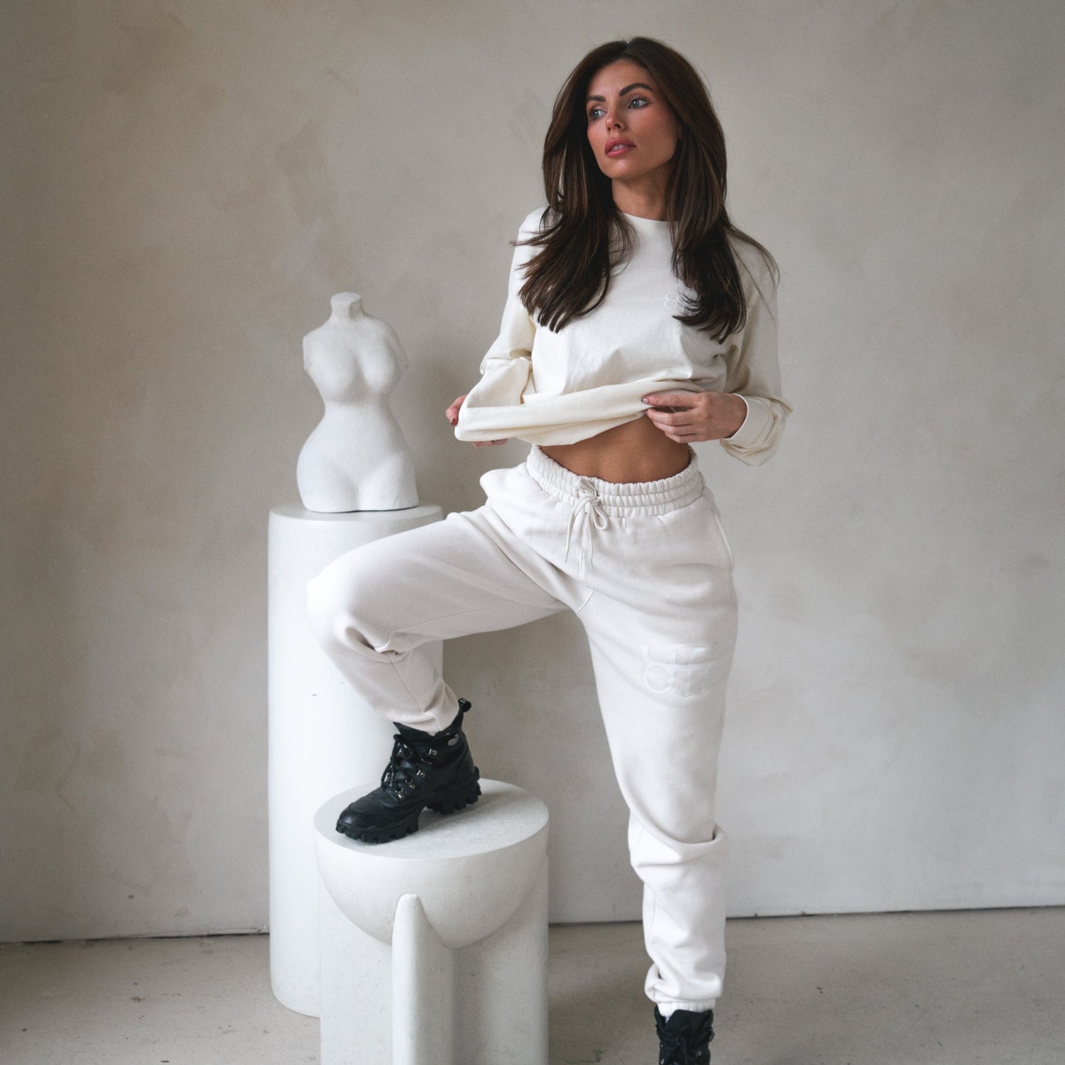 - 2 side pockets, self fabric elasticated waistband & hem cuffs, tonal drawcord